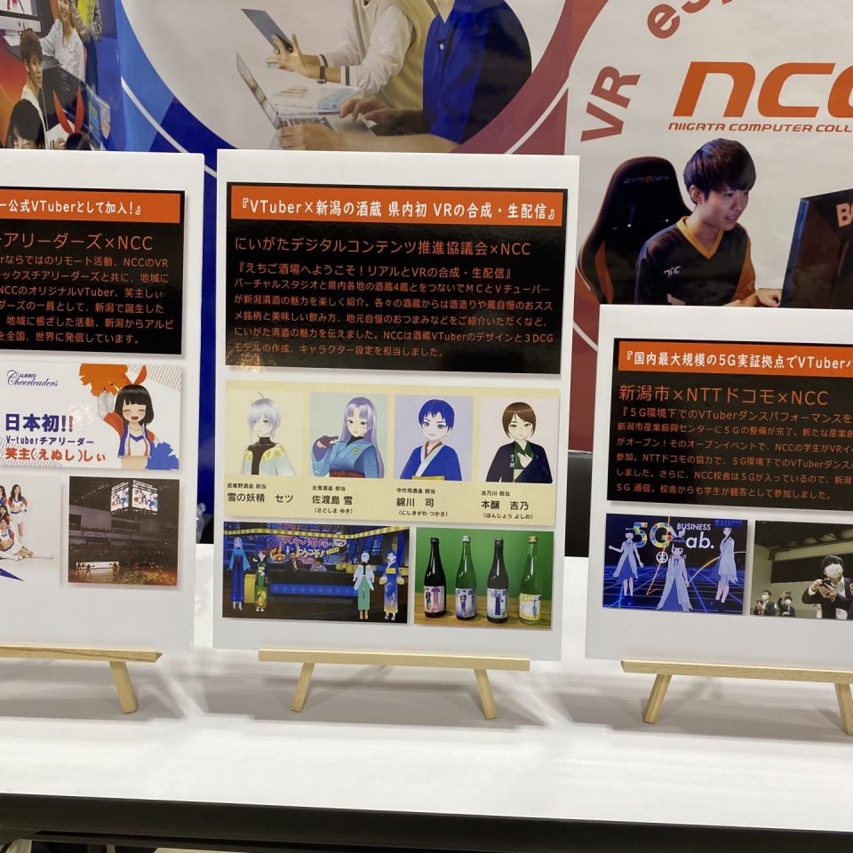 NCCもブースを出展。先進技術であるメタバースの活用、産学官の連携実績紹介をVTuberコースの学生達がスタッフとして紹介しています。