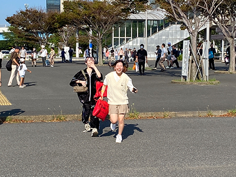 帰りのバスに乗り遅れそうで、猛ダッシュな2人