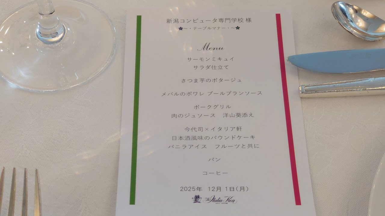 システム系学科は12月1日(月)にテーブルマナー研修を実施しました🍽️