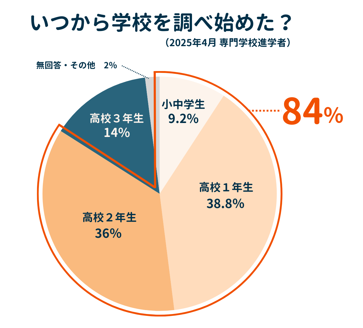 高校2年生までに、全体の【84%】が学校選びをスタート!