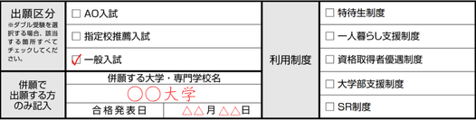 必ず「一般入試」を選択し、「併願する大学」「合格発表日」も忘れずに記入してください!