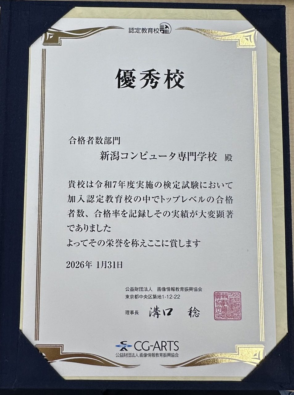 NCCは、2025年度「CG-ARTS賞」において、合格者数部門で『優秀校』としての表彰を受けました!🎉