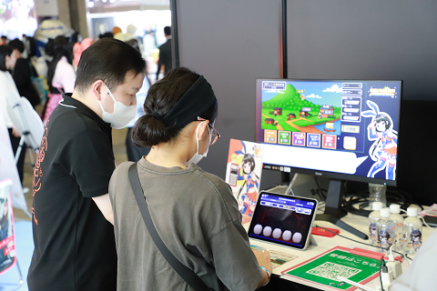 NCCはイラスト体験と、企業連携で協力開発した佐渡金山紹介ゲーム「SADO BUILDER」の試遊コーナーを用意しました!