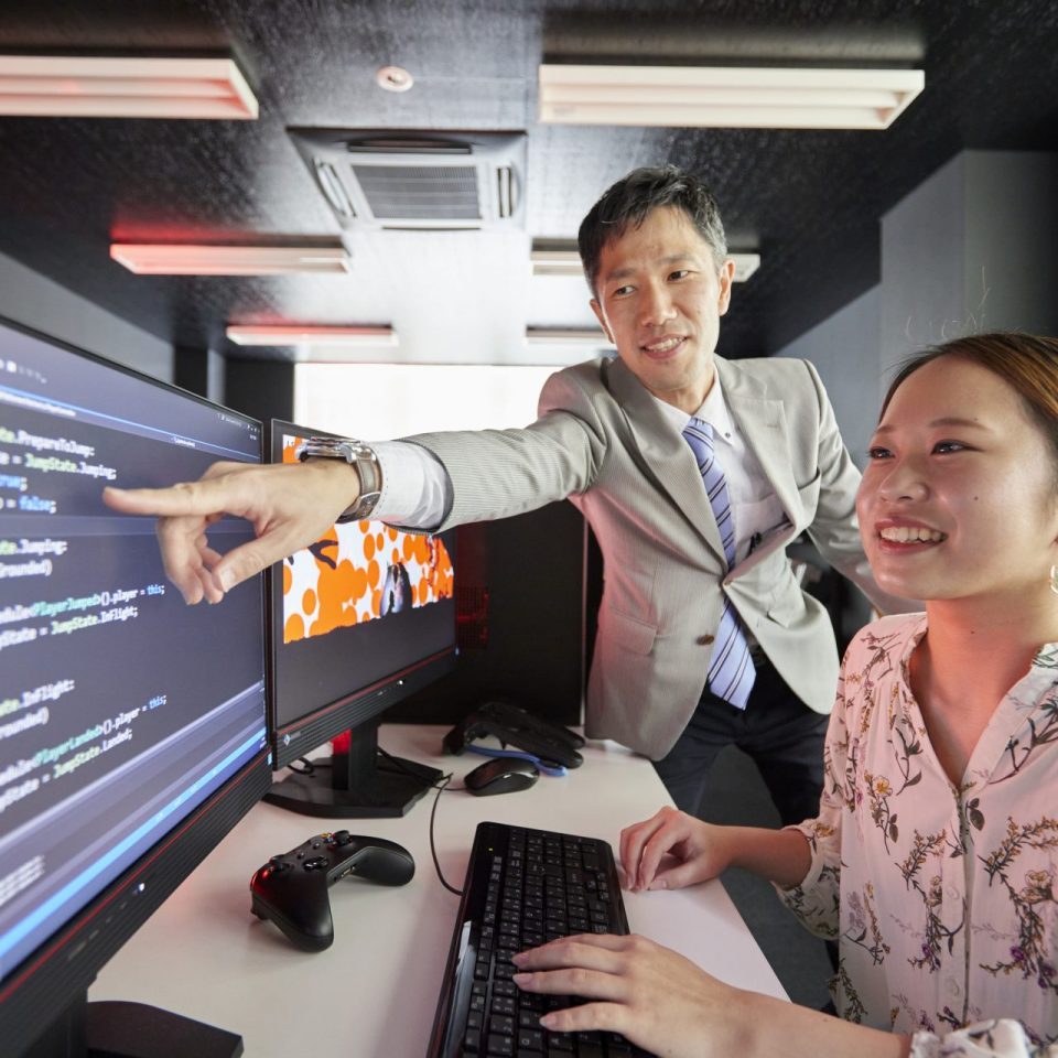 NCCではゲームの中身を作るプログラミング、外側を作るゲームグラフィックを学べる学科が両方あります!